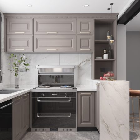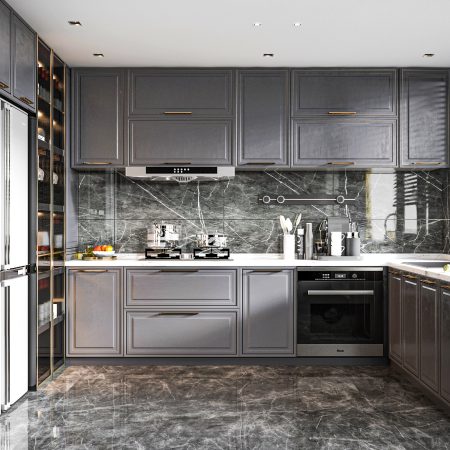 – Chất liệu: Thùng tủ bằng gỗ MDF phủ Melamine, cánh tủ MDF phủ sơn 2K bóng mờ, thùng bếp dưới phần chậu rửa bằng nhựa Picomat cao cấp chống nước, đèn led.